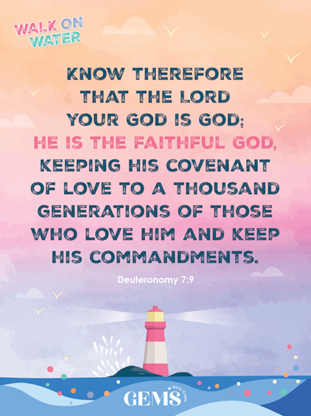 Our theme this year is WALK ON WATER: STEPPING OUT TO TRUST OUR FAITHFUL GOD. It comes from Deuteronomy 7:9.